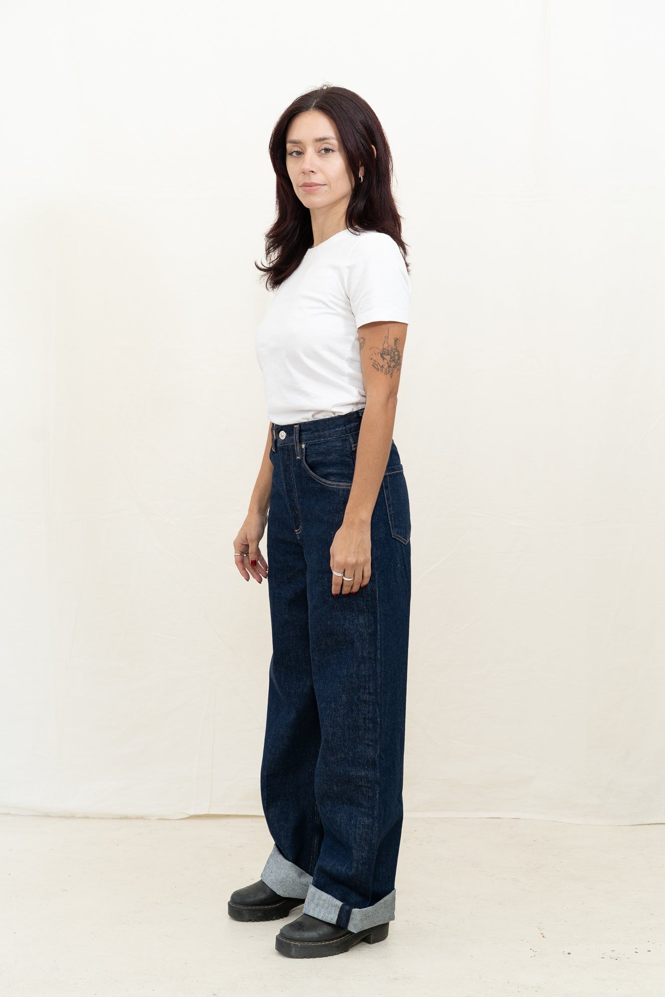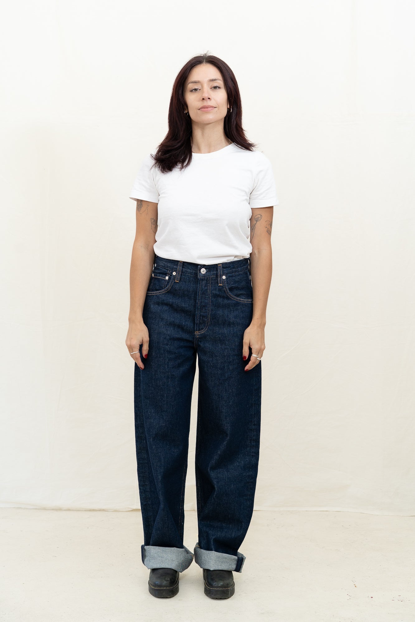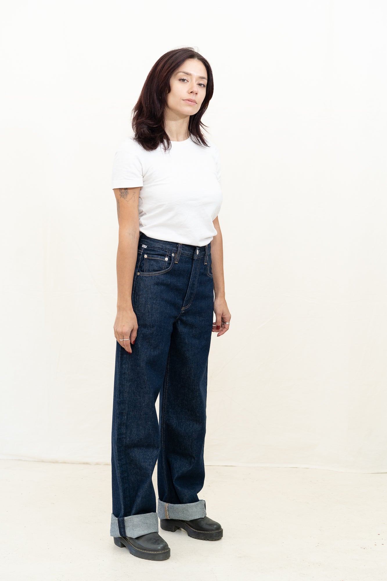 Citizens of Humanity Ayla Baggy denim jean for women is designed specifically for those with a smaller frame. It offers a refined take on the baggy silhouette with a relaxed fit that sits away from the body while maintaining a clean, intentional shape. The ‘Amherst’ wash—a deep, dark indigo rinse—adds polish to the laid-back cut. Crafted from rigid regenerative cotton with a soft hand, it’s an easy staple that styles effortlessly with everything from crisp shirting to slim knits.
