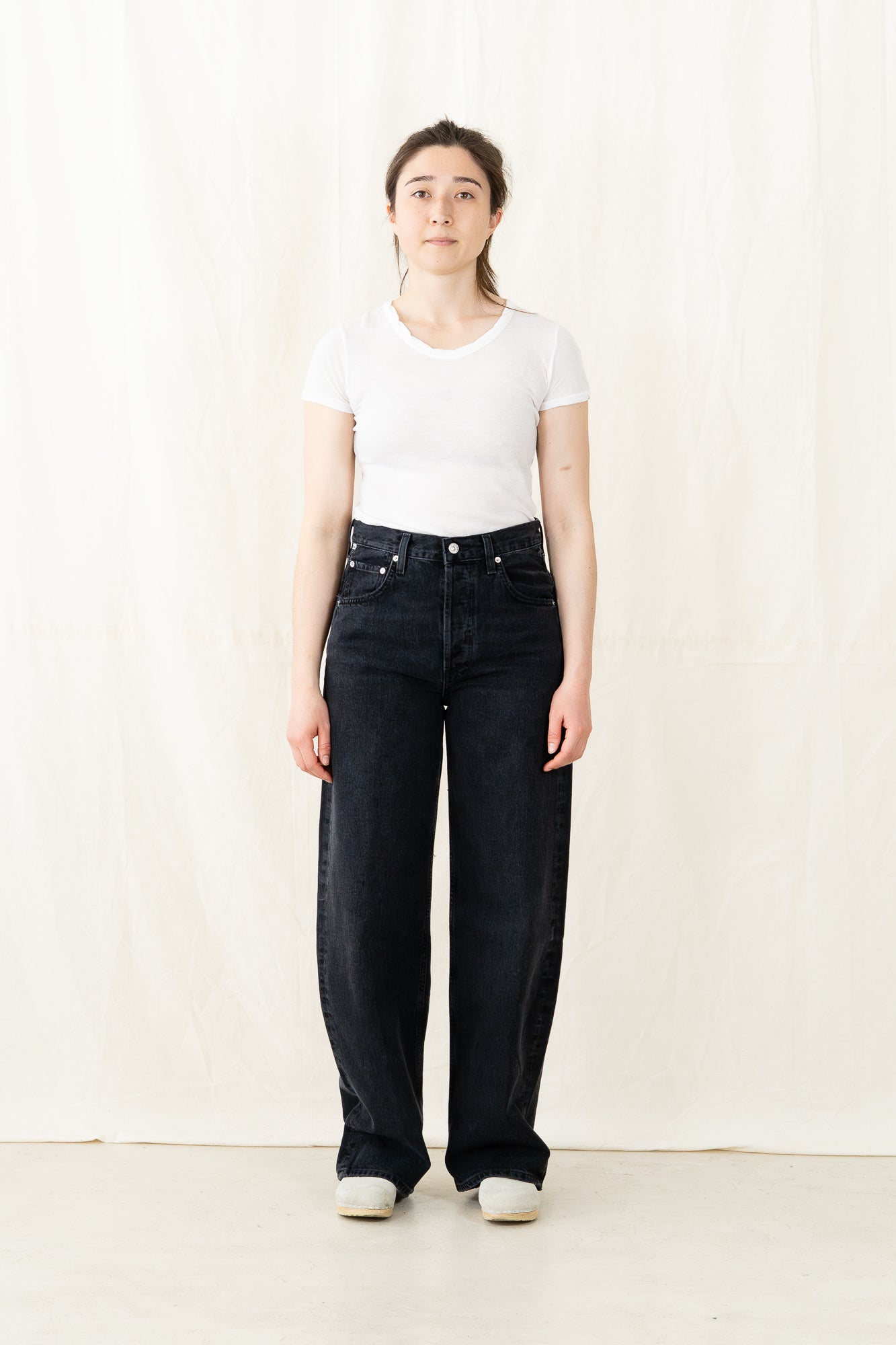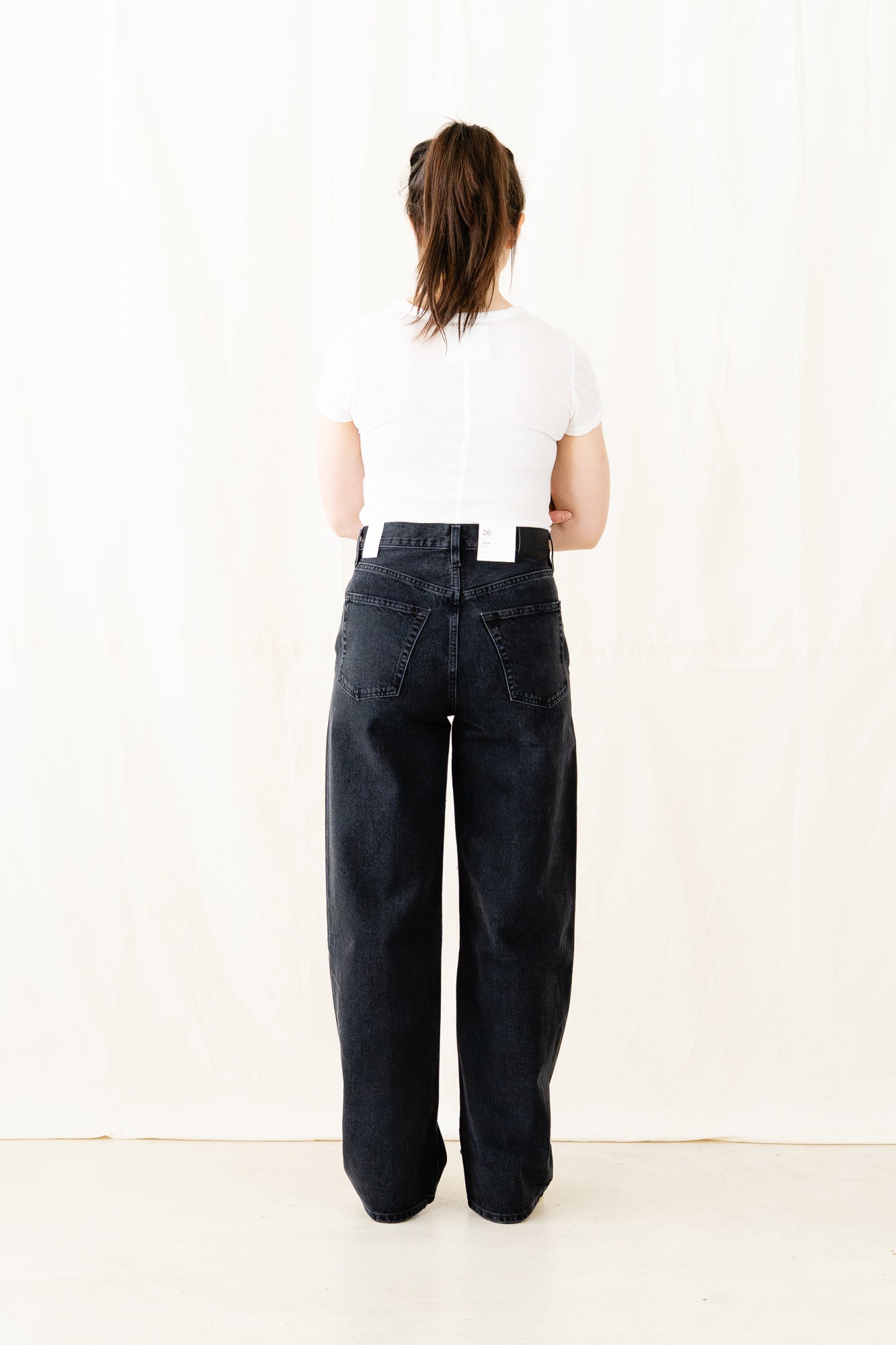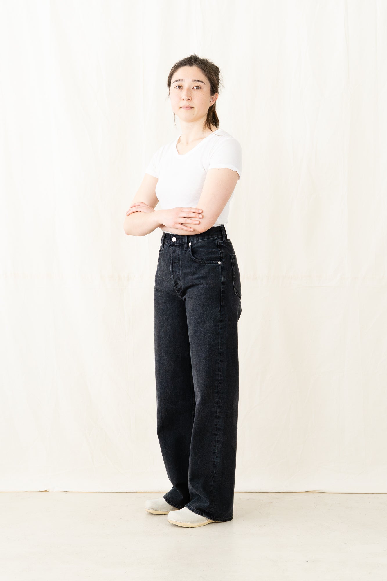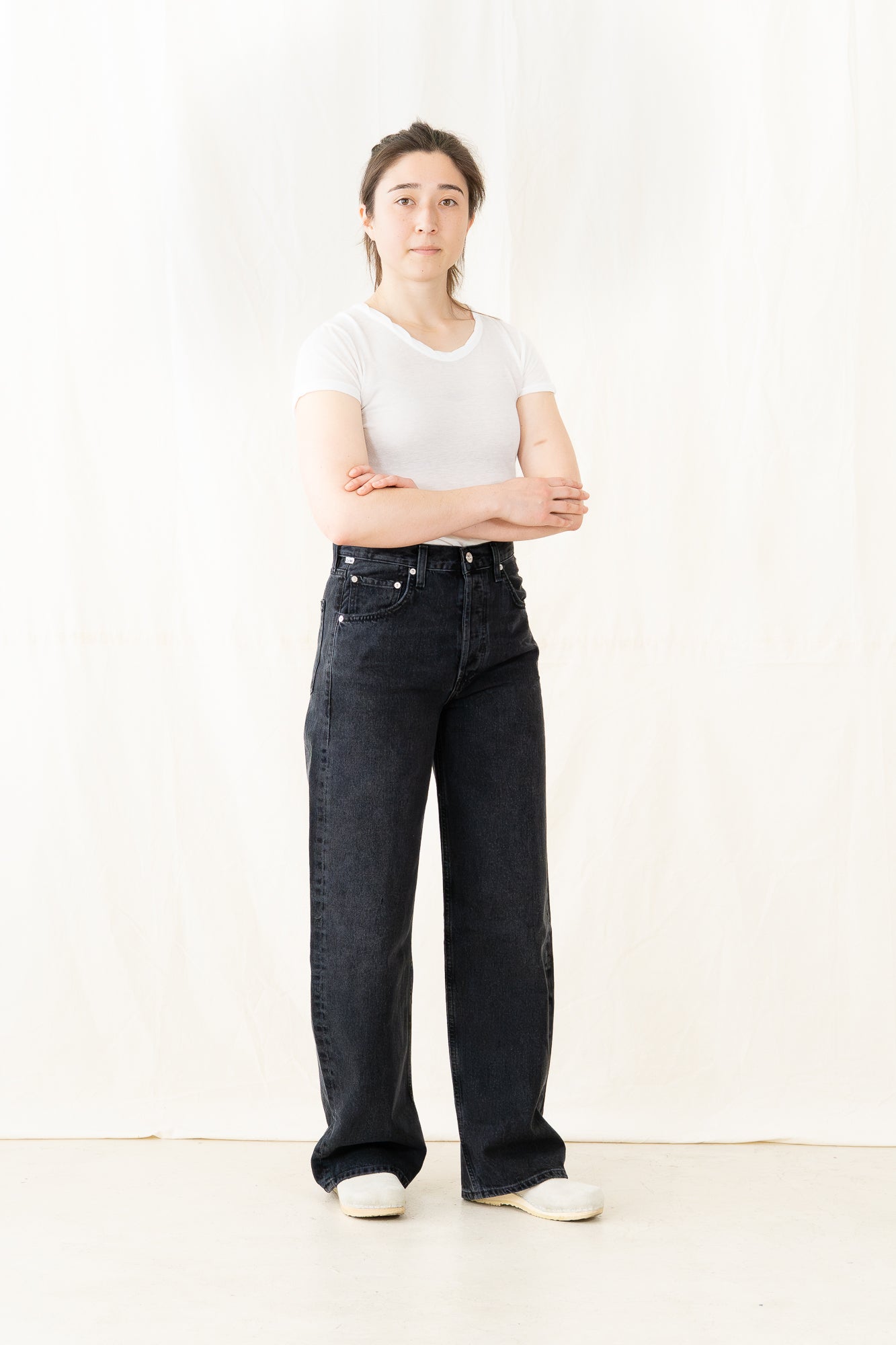 Citizen's Ayla baggy denim jeans are inspired by a reworked vintage silhouette. It has a slightly relaxed but flattering top block into a roomy untacked cuffed leg that can also be worn un-cuffed. This style is true to size and intended to sit relaxed at the natural waist. For a higher and closer fit, we recommend sizing down.