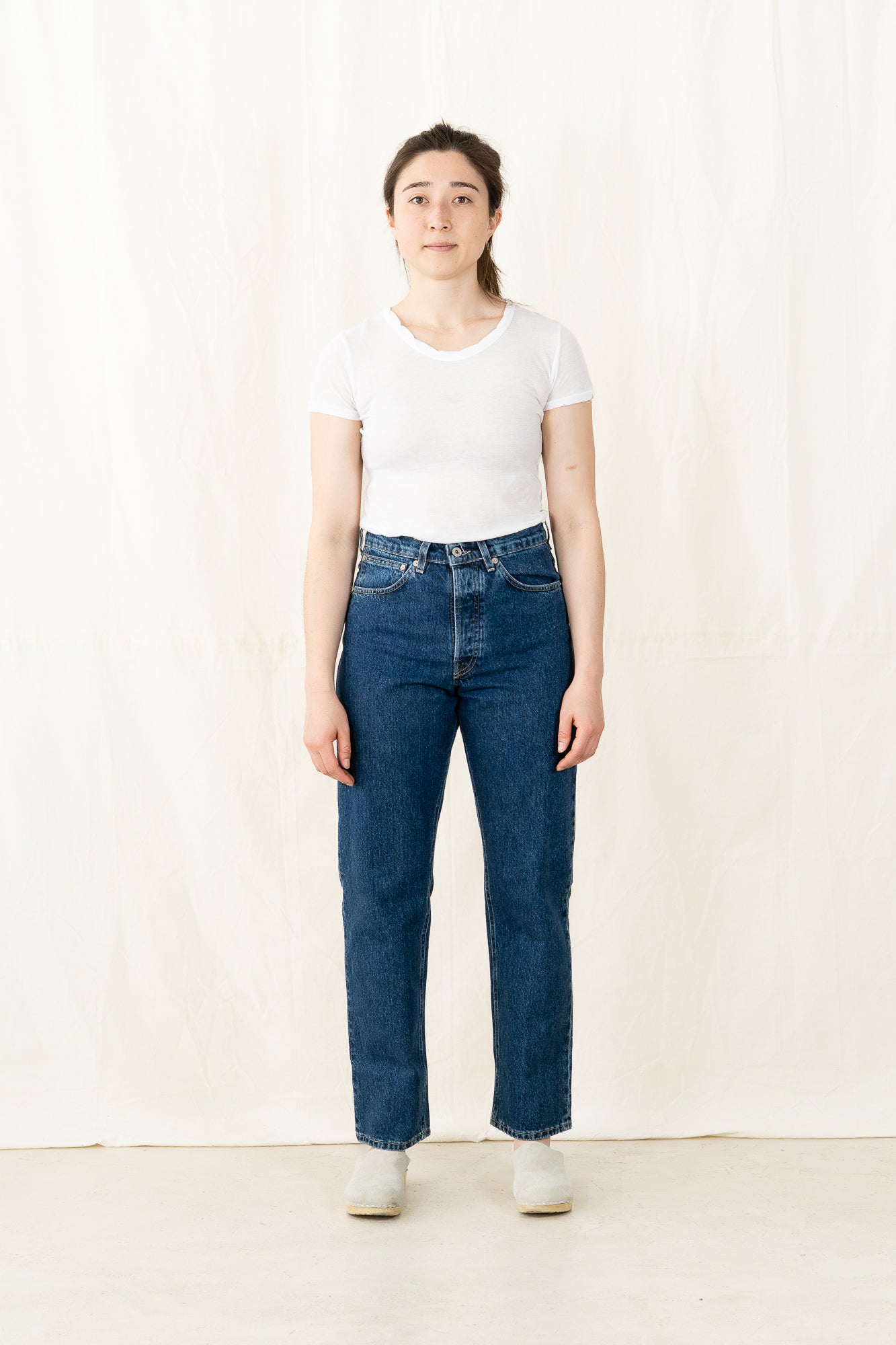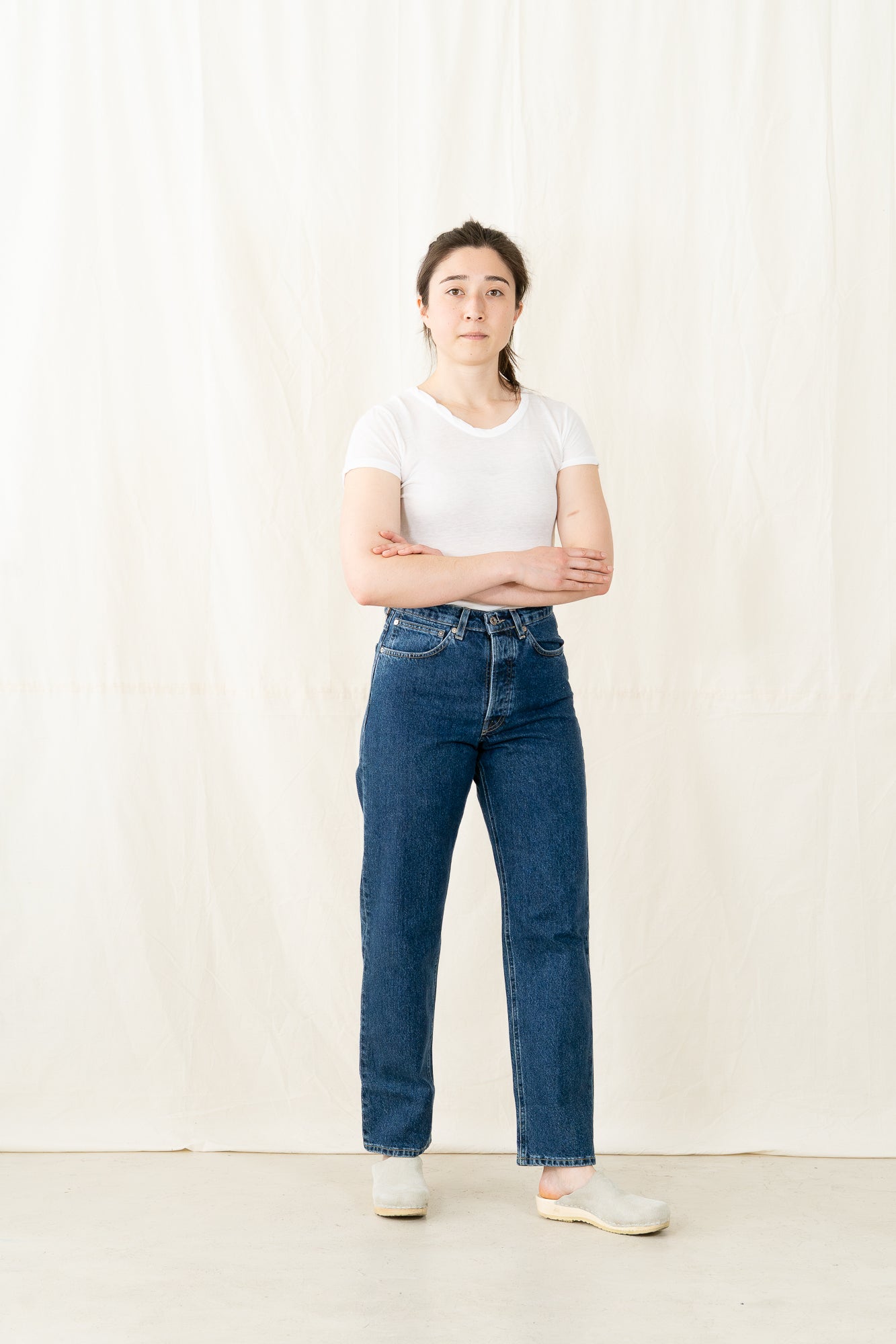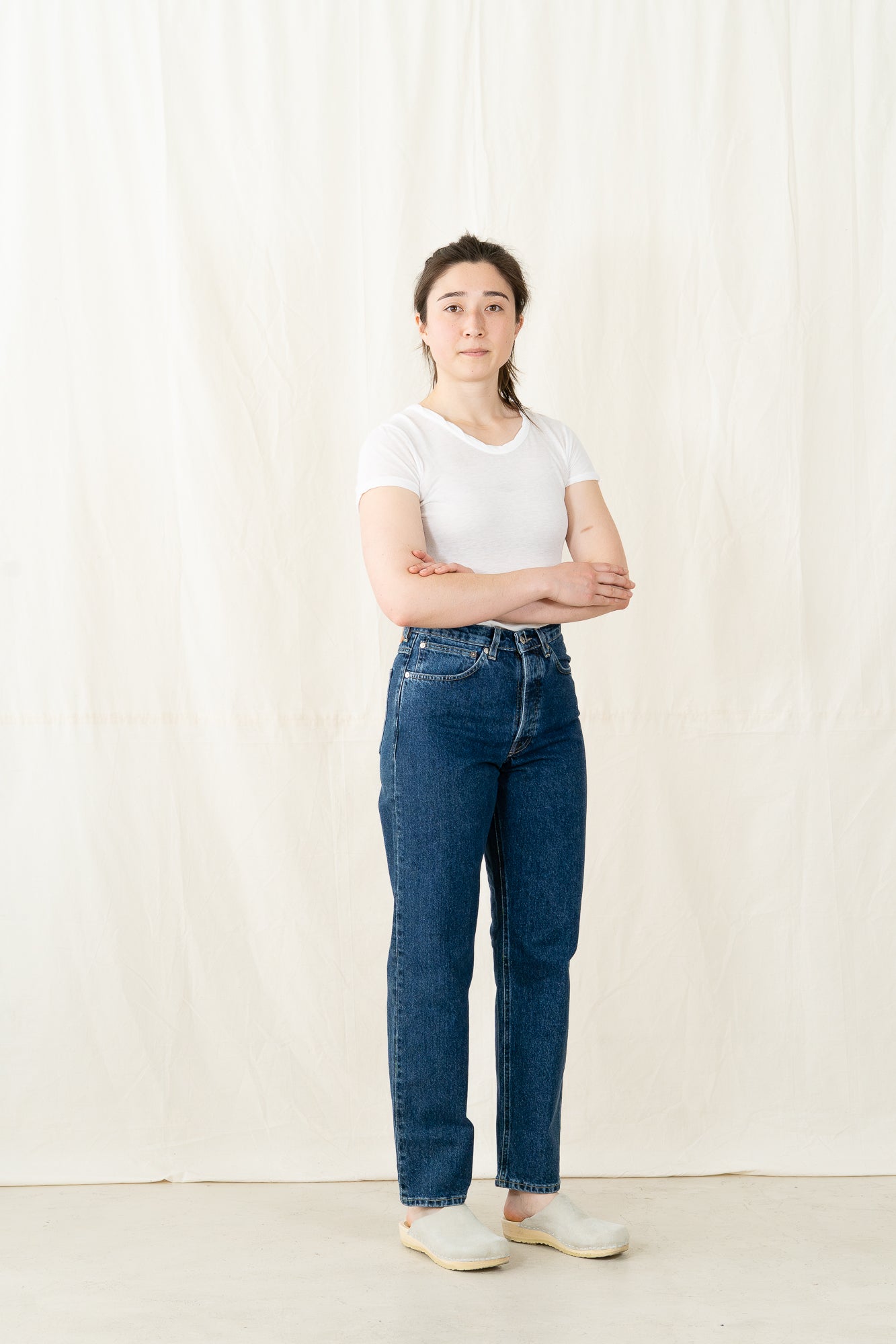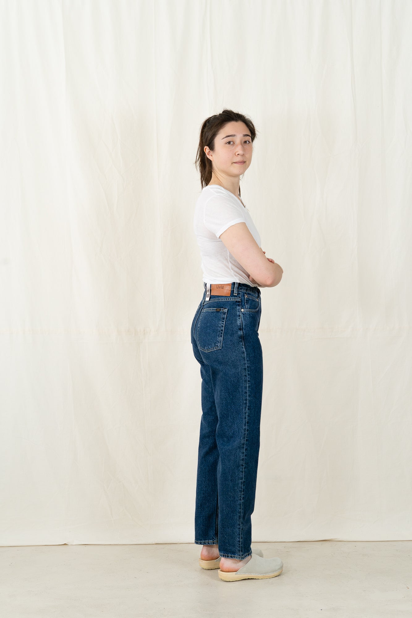 Livid's Faye denim jeans for women has a rigid curved straight fit that has been washed for a soft hand feel. It's curved at the waist giving a great fit, with a straight silhouette that slightly tapers at the leg opening. A very classic fit that goes perfectly with your favorite pair of shoes or boots.