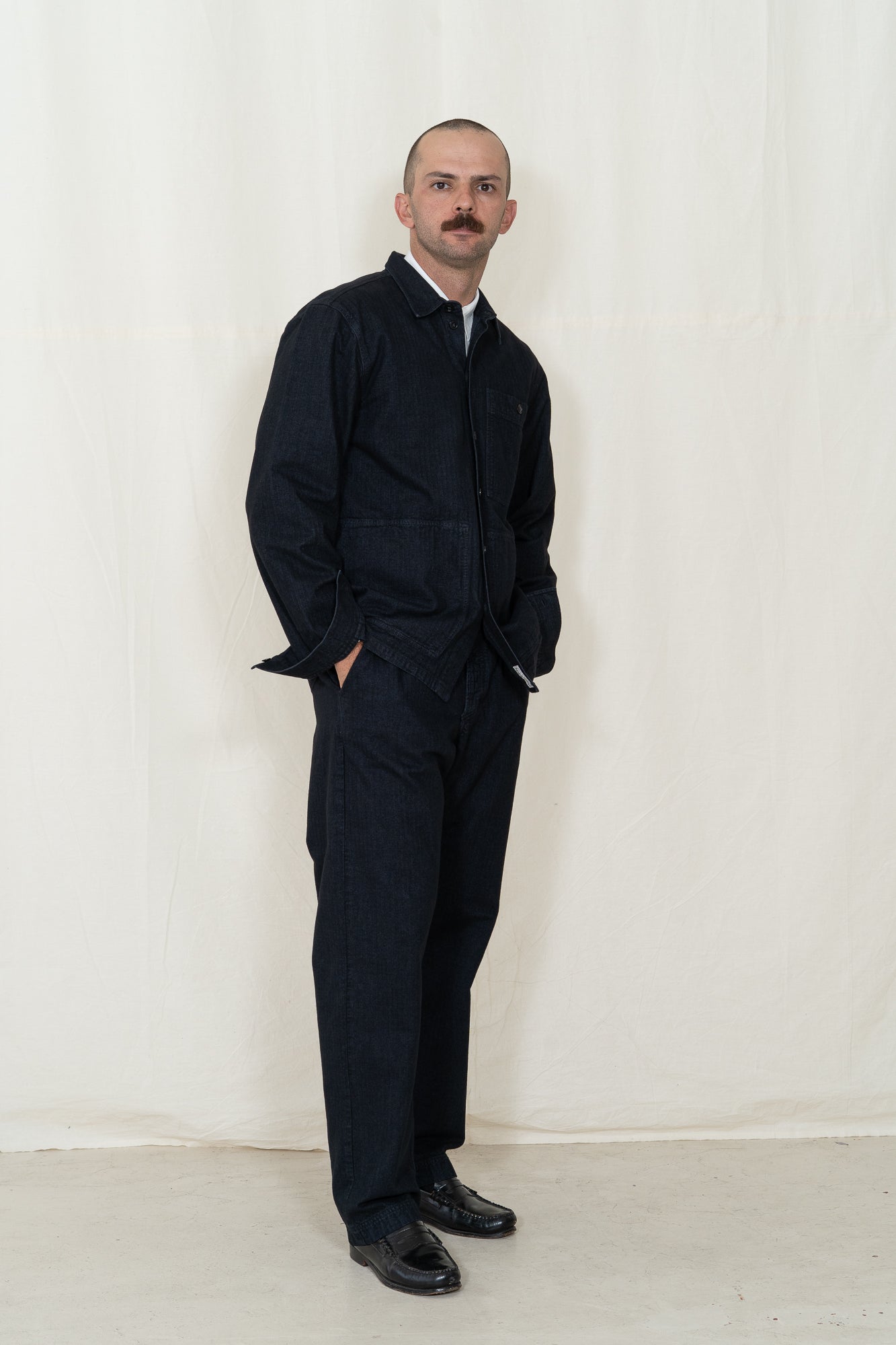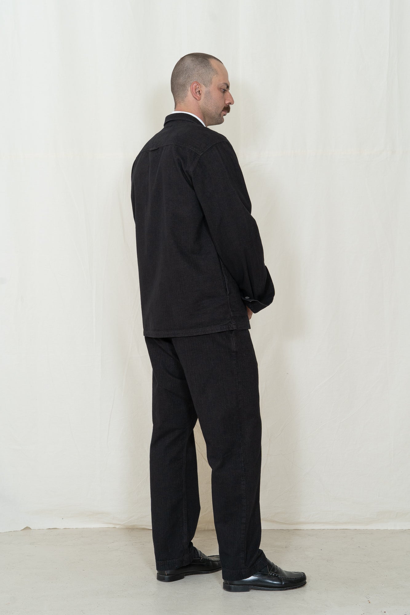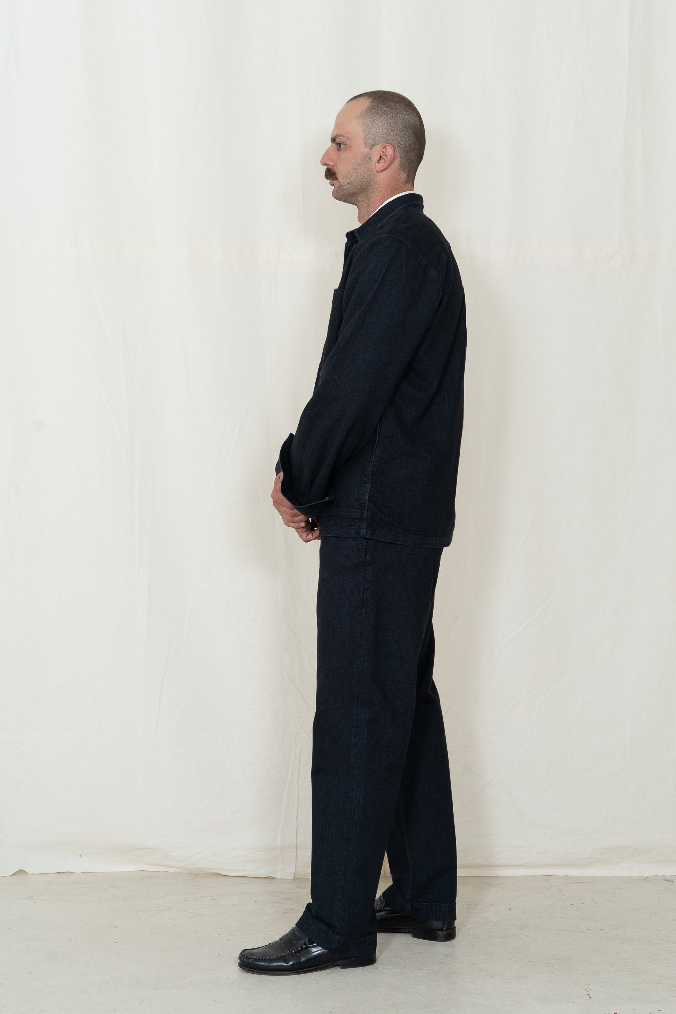 Hansen's overskirt for men is crafted from Italian cotton herringbone with a brushed finish for softness. It's over-dyed for a rich, textured look. This relaxed-fit overshirt features a buttoned chest pocket, two side-entry front pockets, corozo button front closure, and buttoned cuffs. A hanging loop at the back yoke adds a subtle utilitarian detail.