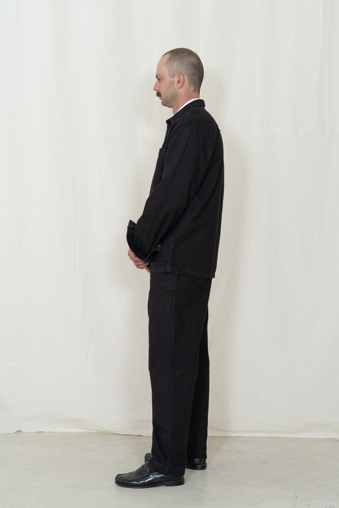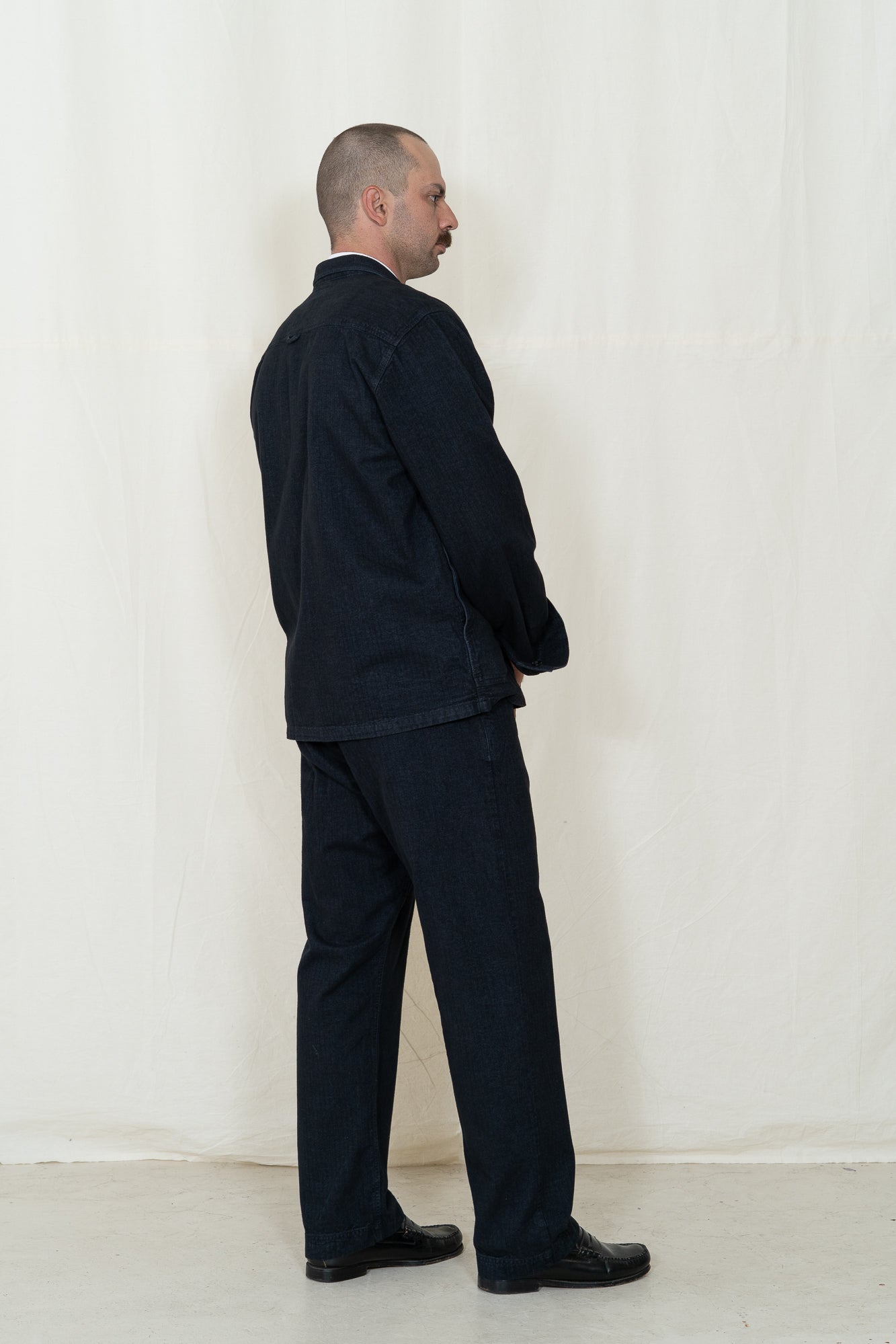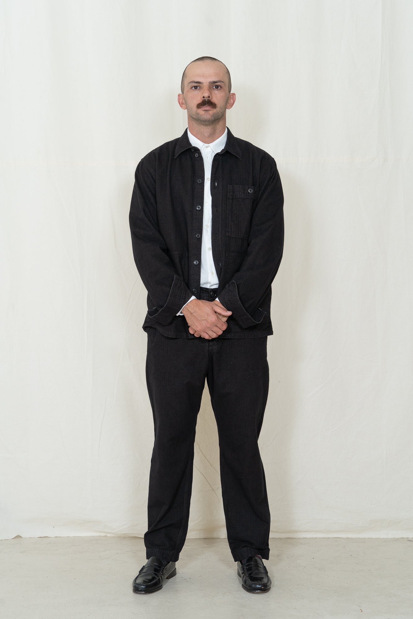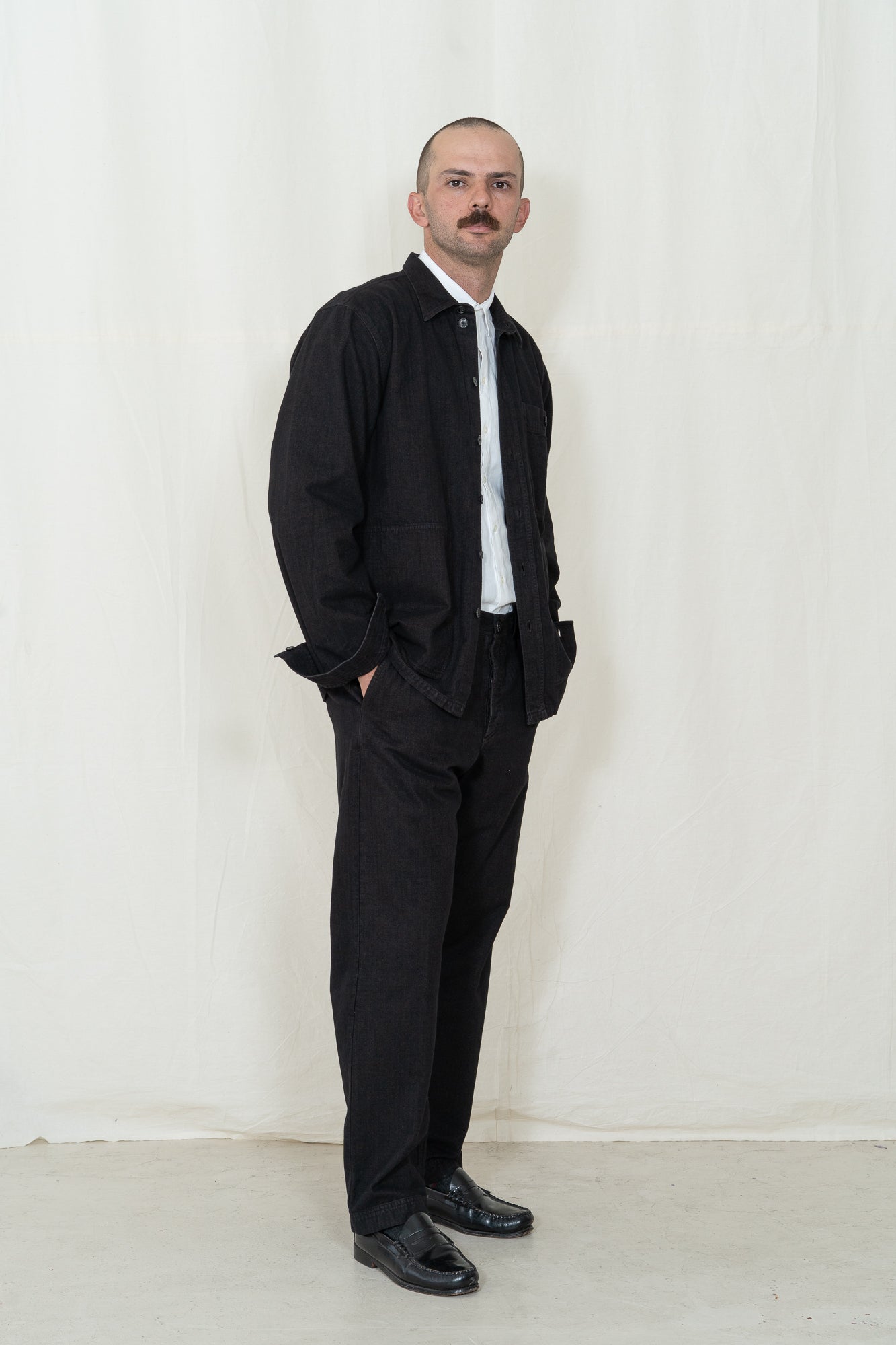 Hansen's overskirt for men is crafted from Italian cotton herringbone with a brushed finish for softness. It's over-dyed for a rich, textured look. This relaxed-fit overshirt features a buttoned chest pocket, two side-entry front pockets, corozo button front closure, and buttoned cuffs. A hanging loop at the back yoke adds a subtle utilitarian detail.