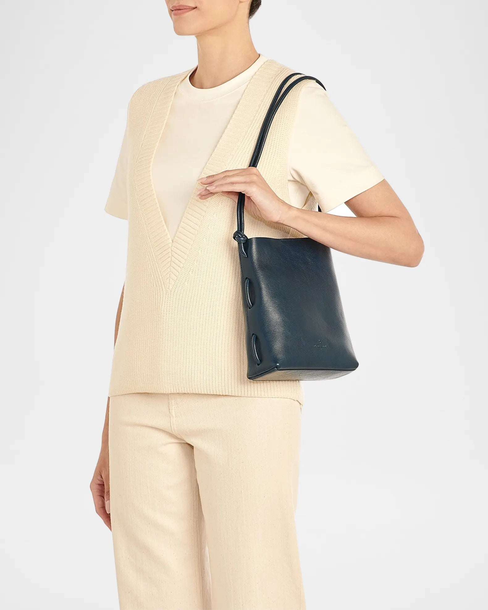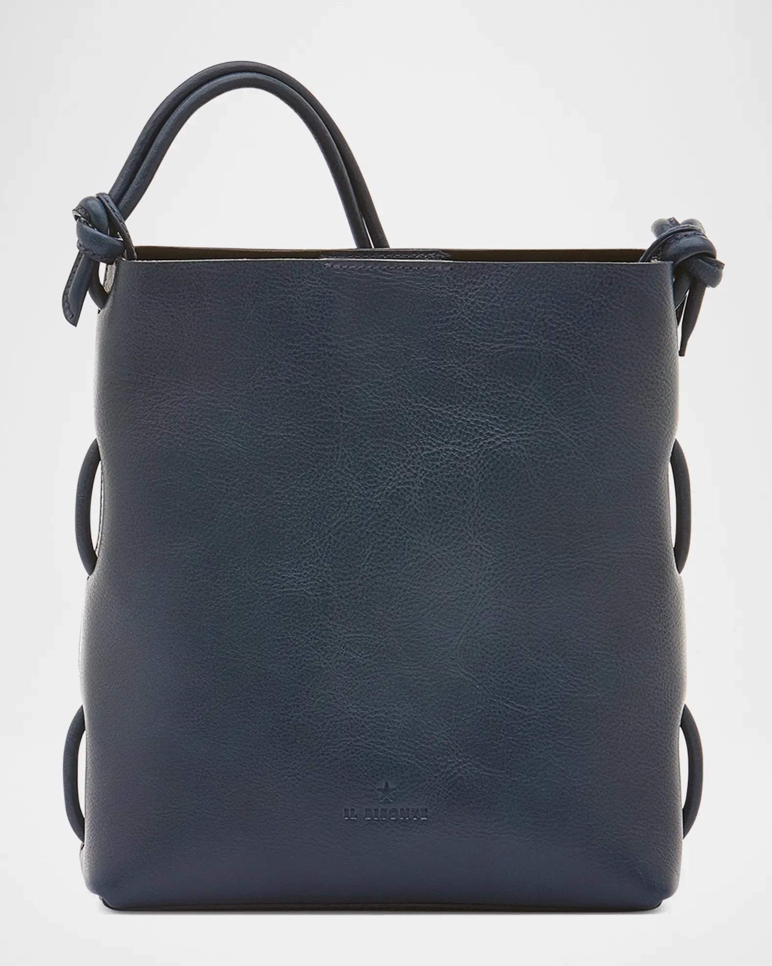 Il Bisonte "Snodo" shoulder bag in vegetable tanned cowhide leather. Adjustable shoulder strap with knot accent. It can be worn as a shoulder or crossbody bag. Open top with magnetic closure. Interior, one slip pocket. Suede lining.
