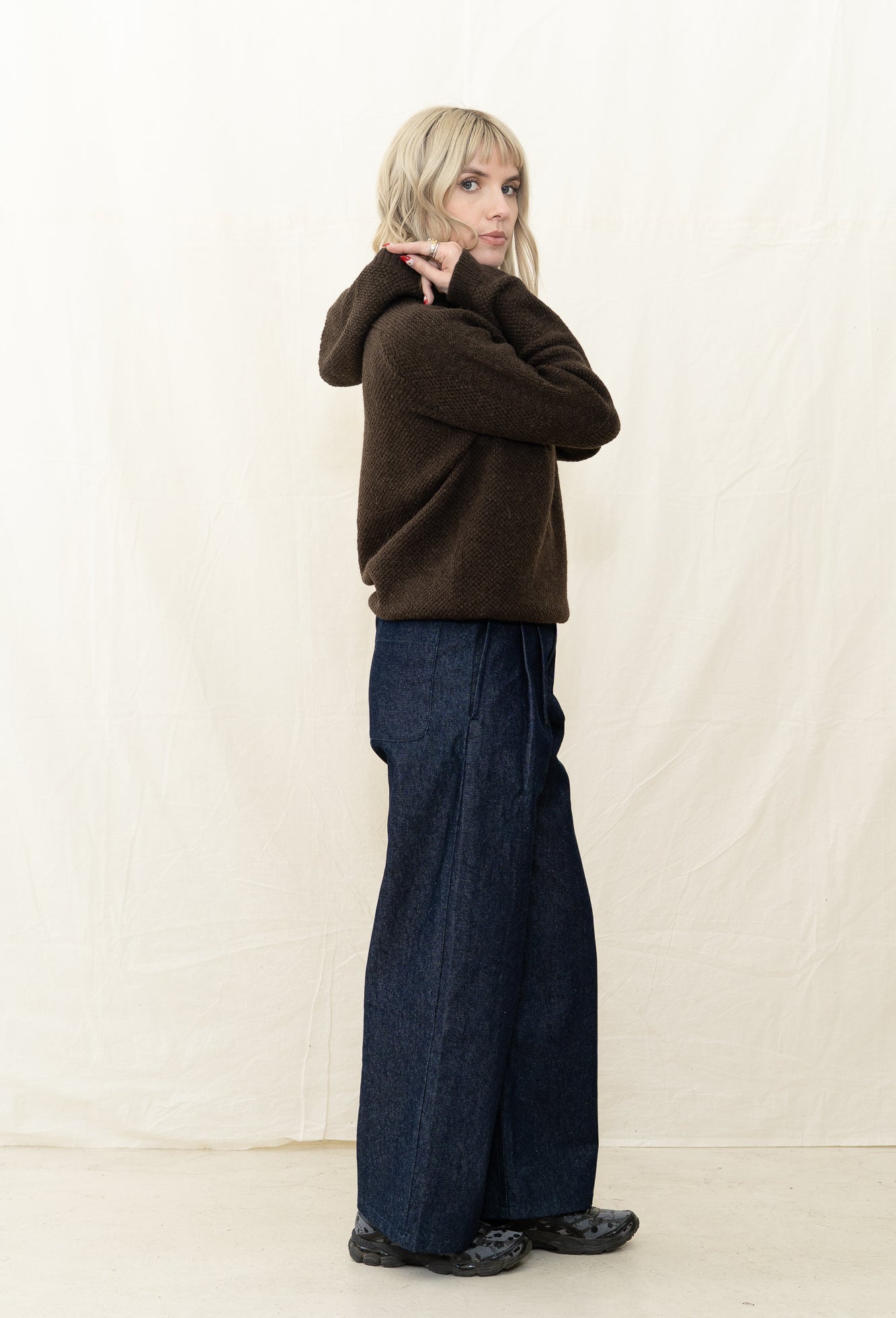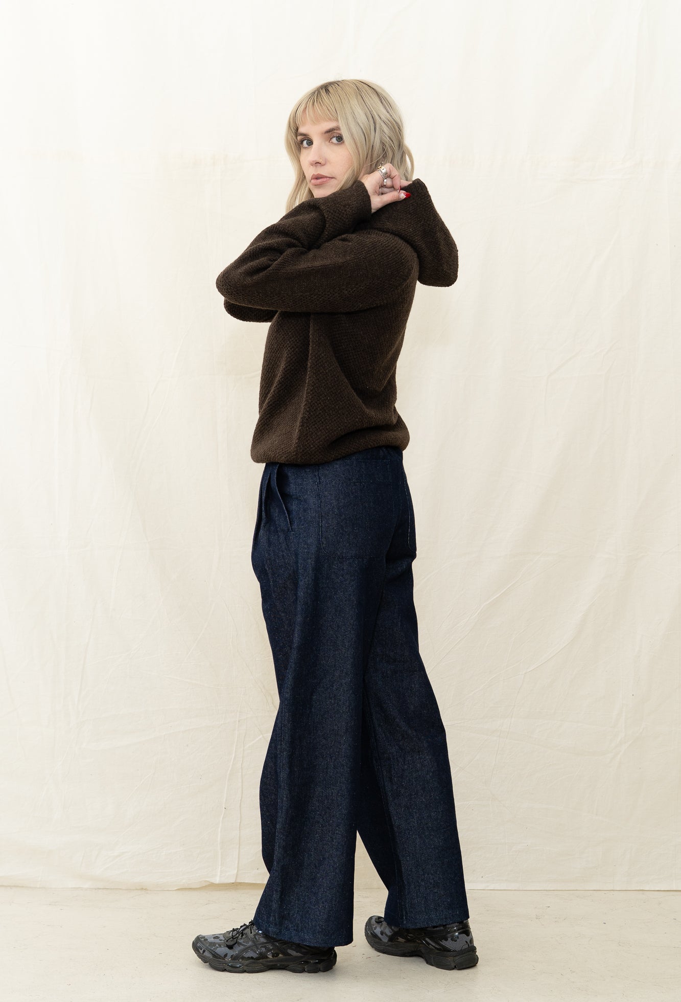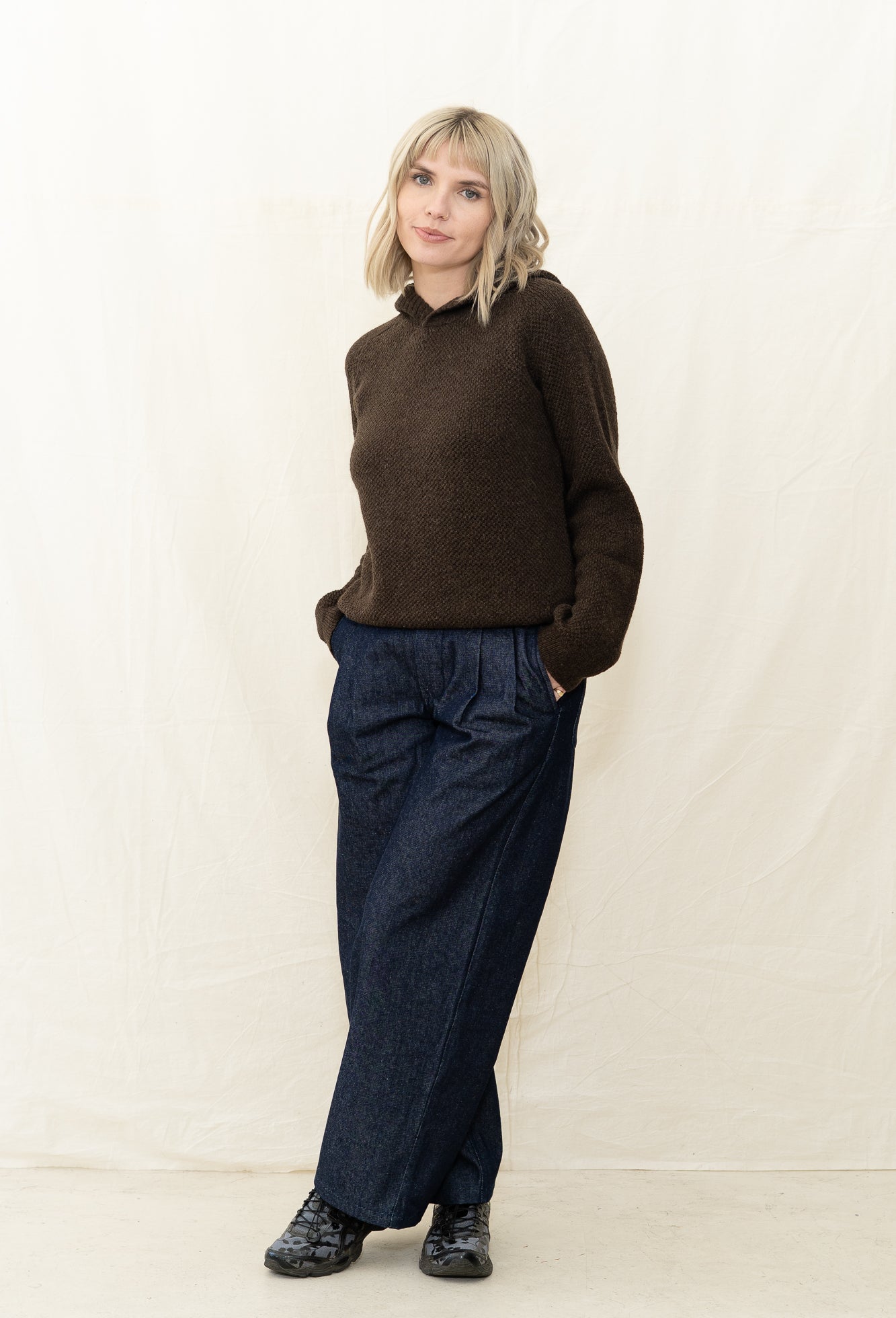 INDI + ASH Santi Hoody for men and women has all the great details of a vintage Swiss military thermal. Knit in a fine gauge from superfine undyed alpaca, with a waffle stitch at the body and a saddle raglan and rib that travels across the back yoke and down the sleeve to the cuff. It is can be worn on its own, or layered under a shirts or jacket.
