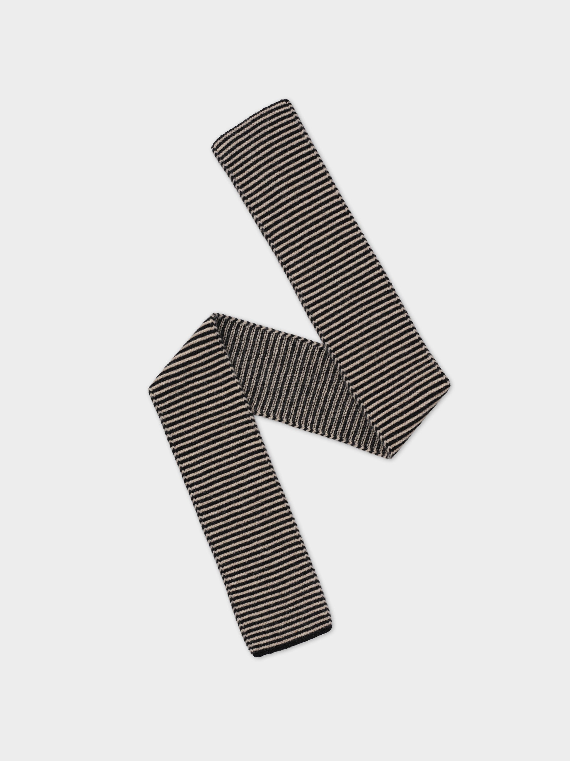 A small hand knit look scarf in narrow stripes. Made from the softest lambswool.
