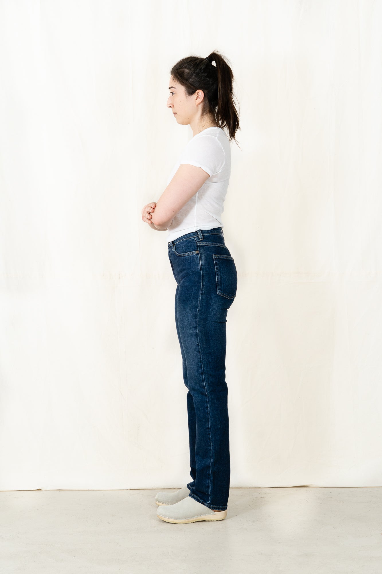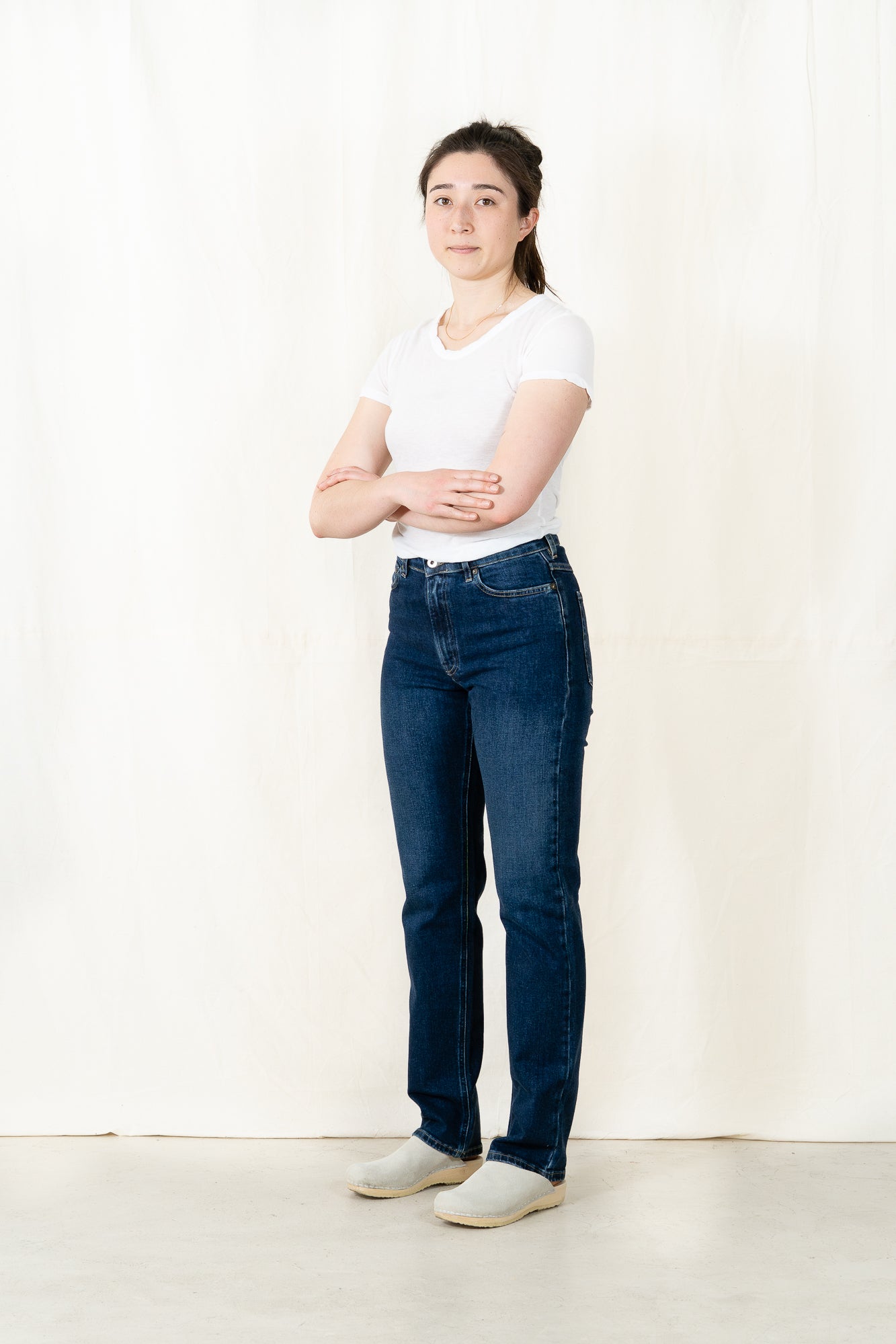 Livid's Ella slim straight jeans, made with Japanese Kuroki Indigo denim, are made with the goal of creating a comfortable denim that looks rigid while offering comfort, stretch, and recovery after wear. Perfect for those loving genuine fitting jeans.