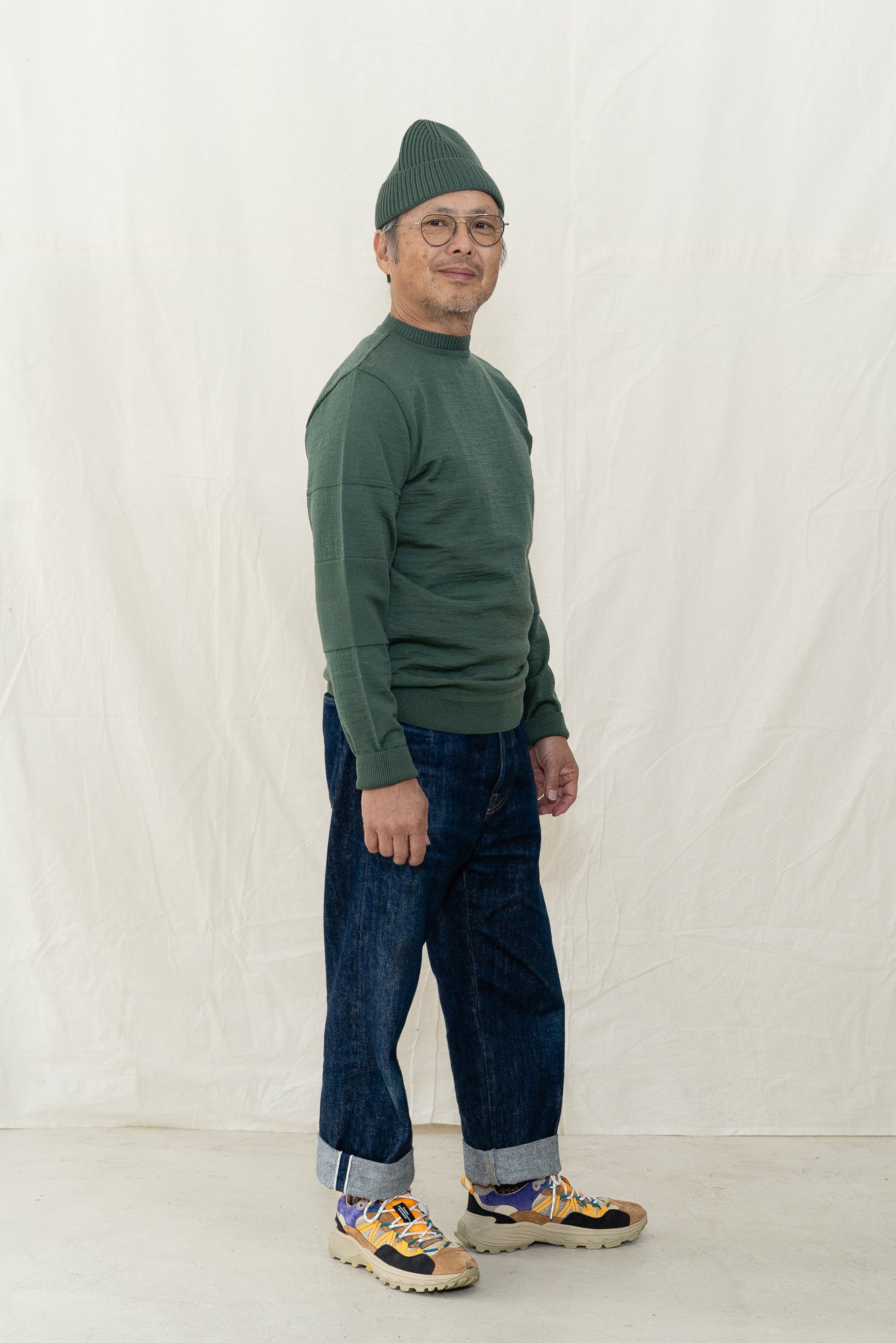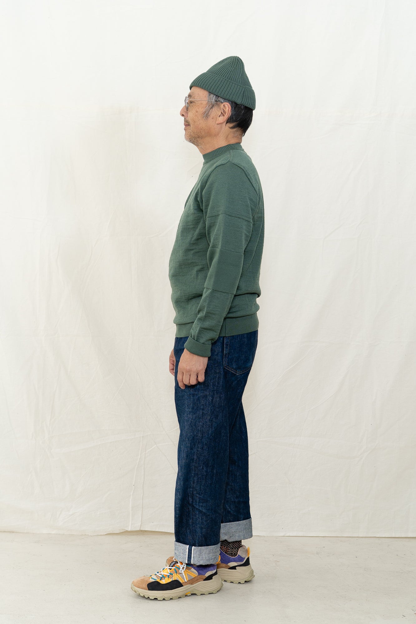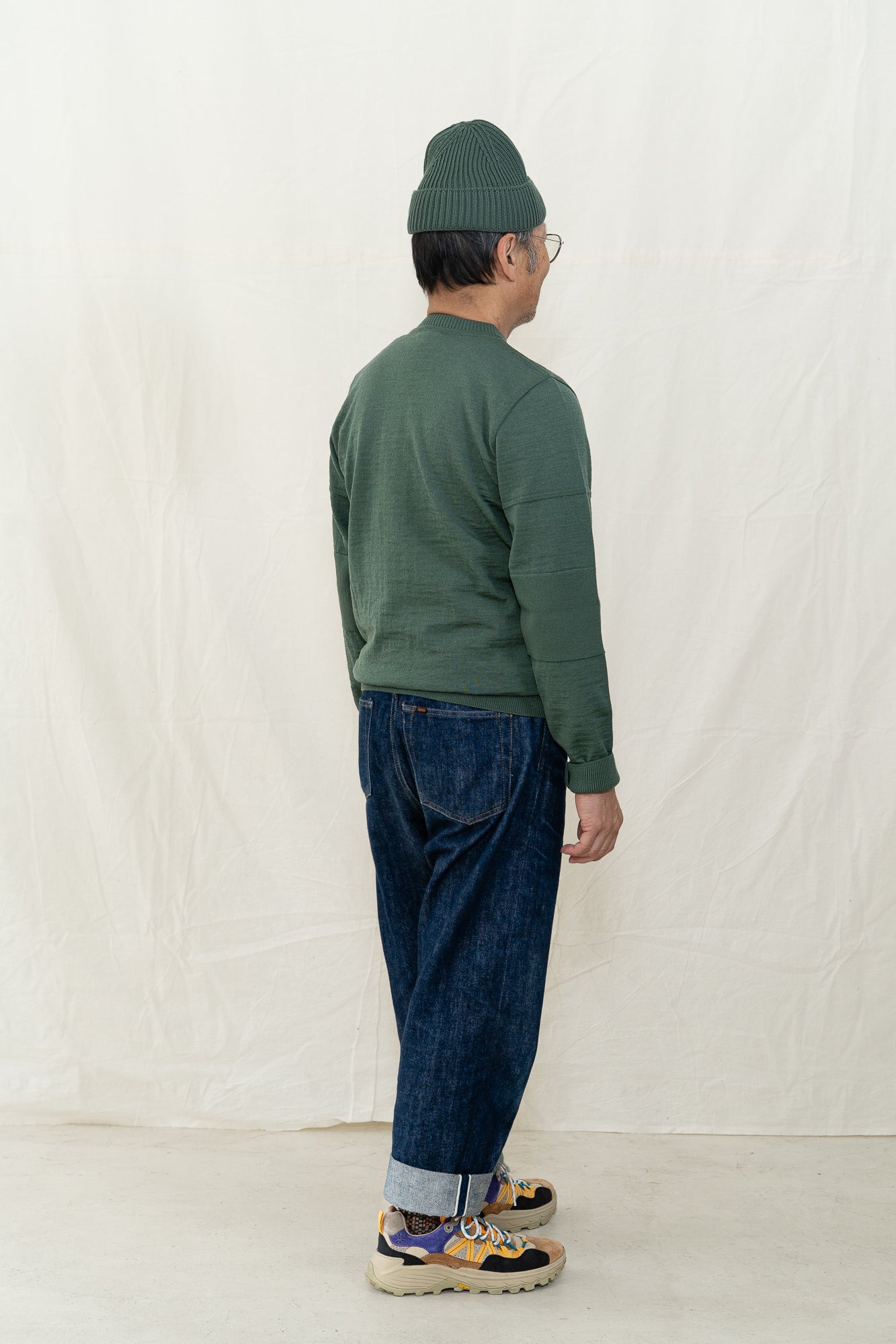 S.N.S. Herning Reset crewneck sweater for men is a twist on on their iconic fisherman sweater. Based on a pattern from 1919 and in production since 1930, it's easy to see (and feel) why it's been a constant in their line. Angled sleeves reduce yarn waste and create their signature dropped shoulder. Bubble knit segments mixed with plain knit. Outside robust fisherman wool. Inside extra fine merino.
