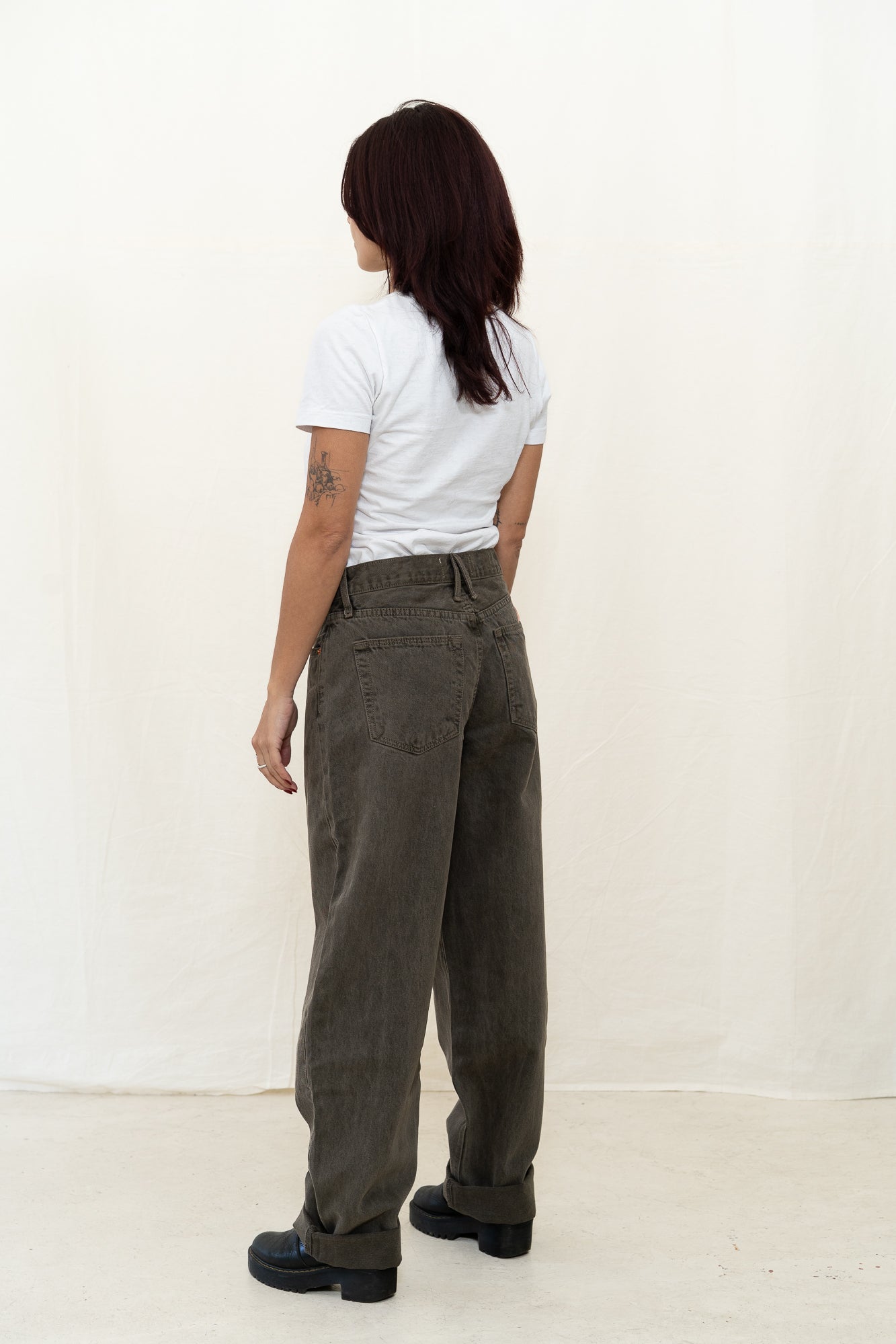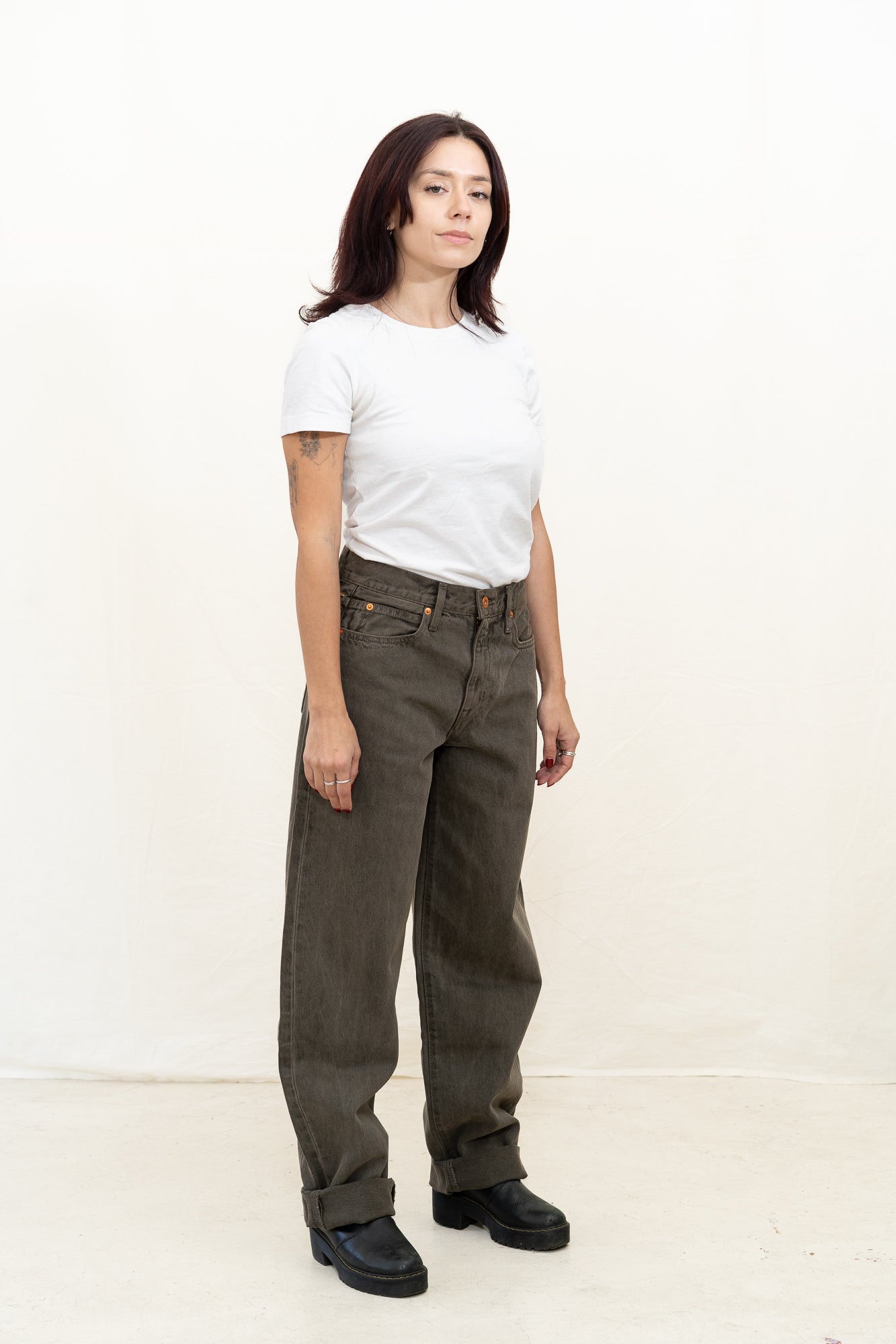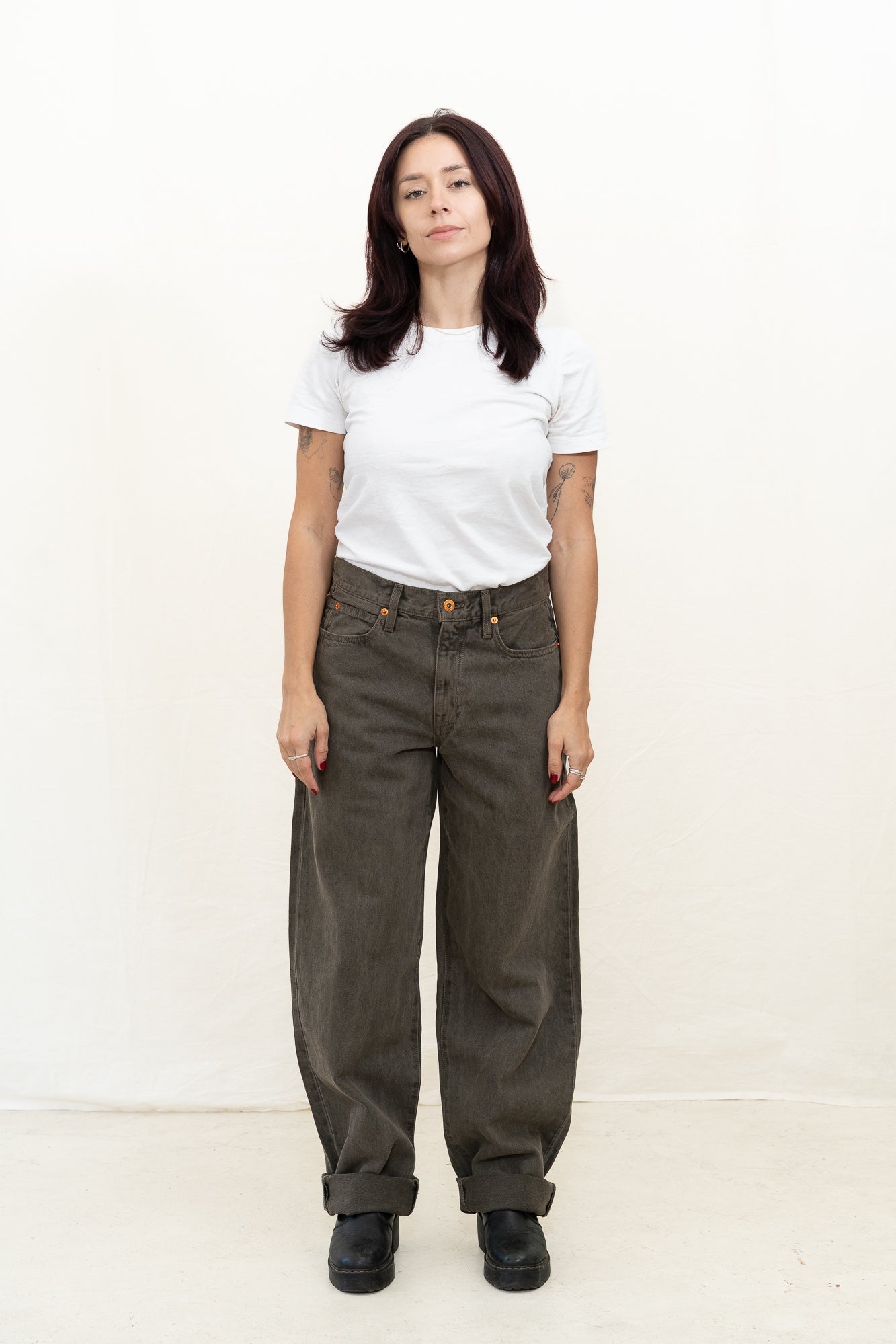 SLVRLAKE Ella denim jeans for women feature a relaxed body and curved leg with a mid-rise waist, offering an effortless yet refined fit. Keystone Mountain is crafted from regenerative cotton and finished with a garment-dye treatment that creates a rich, one-of-a-kind tone, delivering a timeless look with a vintage-inspired edge.
