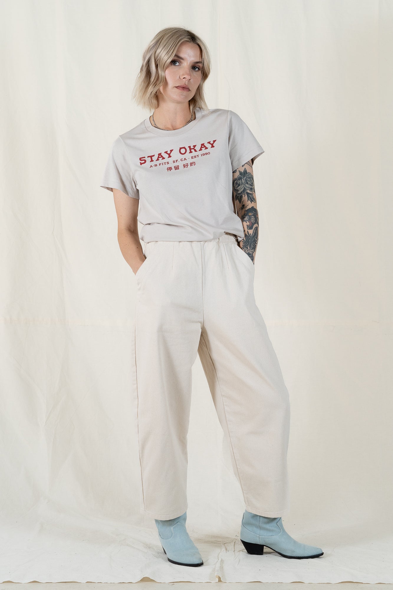 New for Fall: Stay Okay Women's S/S Heavy Faded Logo T-Shirt. The women's version has a cap sleeve.